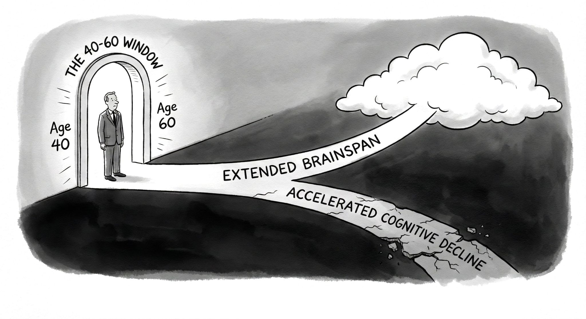 One of the most critical of these windows opens in our 40s and closes in our 60s. This is the period I call the "40-60 Window." It’s a make-or-break moment for your long-term cognitive health, a time when the trajectory of your brainspan is largely set. The choices you make during these two decades have an outsized impact on your cognitive function for the rest of your life. This isn't a scare tactic; it's insider knowledge that could change everything about how you age.